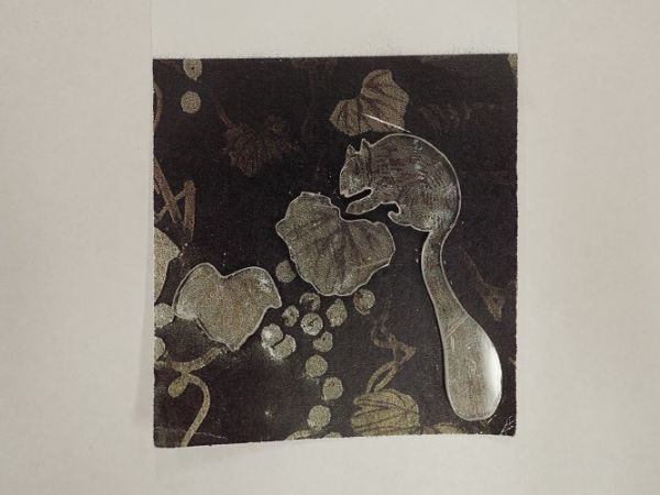 葡萄と栗鼠の貝片を膠で貼り終えた状態
