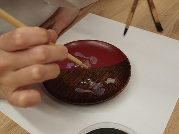 実際に触れると、塗膜や螺鈿(貝片)の薄さを感じることができます。