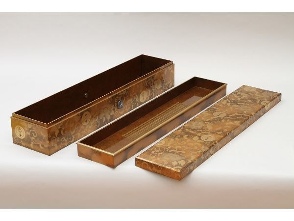材質:木製、黒漆塗り、叢梨地 [むらなしじ] に蒔絵装飾