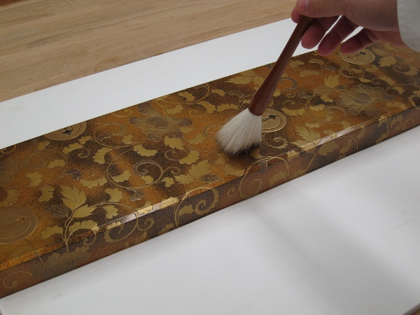 毛の柔らかい刷毛などを用いて、表面に付着している塵や埃を払い落としました。