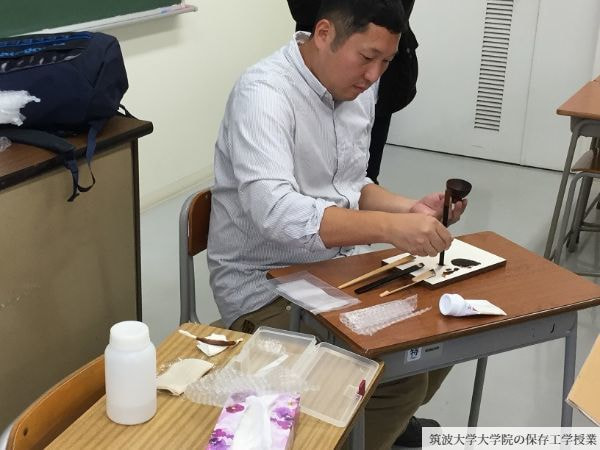 We give lectures and practical work on the conservation and restoration of urushi objects at universities and other institutions.