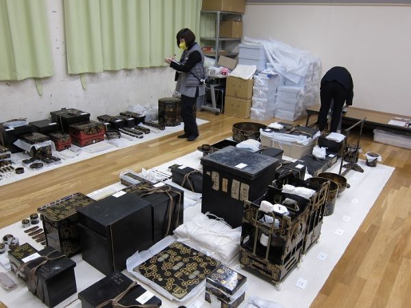 大分県臼杵市所蔵 破亀甲花菱沢潟軍配紋散蒔絵婚礼調度ほか